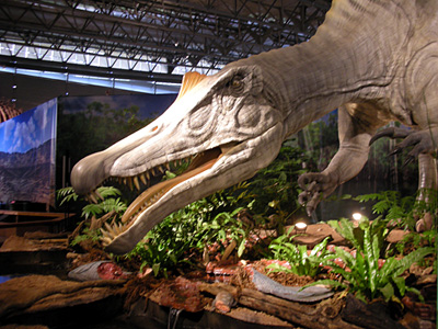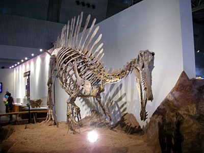 ジュラシックパークでは八面六臂(?)の活躍を見せていたスピノさんですが、実際は魚食であそこまでアグレッシブでもなかったとか。本来の食事スタイルは魚丸飲みですが、この子はうっかり咬み裂いてしまって、どう食べるべきか困っている模様。