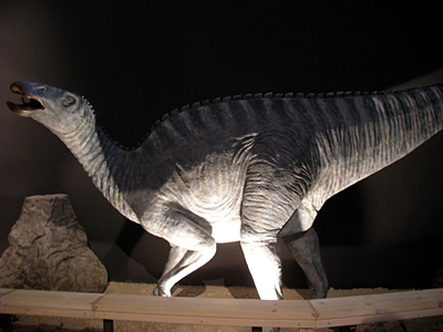 ミイラ化石ダコタの復元像。化石も撮影したんですが、あまりにも残念な写りだったのでこちらに。死んだあとに古代ワニにかじられたらしいです。